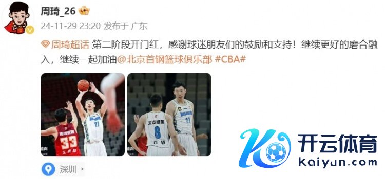 赛后,周琦更博并写谈:“第二阶段开门红,感谢球迷一又友们的饱读吹和援手!不竭更好地磨合融入,不竭全部加油。”