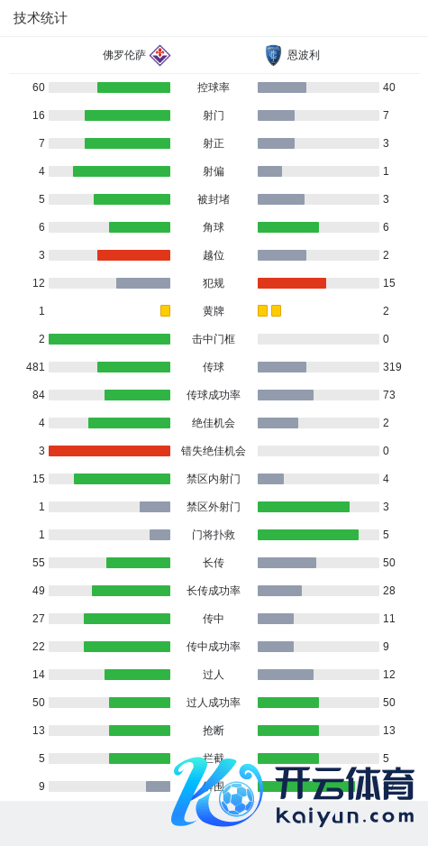 第59分钟,佛罗伦萨球员莫伊塞-基恩打入一球。