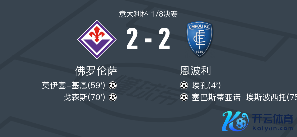 戒备大利杯1/8决赛中,佛罗伦萨与恩波利张开了一场狠恶的对决。比赛中,恩波利的利亚姆-透露出色,先后助攻队友埃孔和塞巴斯蒂亚诺-埃斯波西托各入一球,为球队孝敬了首要的遑急力量。佛罗伦萨方面,莫伊塞-基恩和戈森斯也出头出头,各自攻入一球,展现了他们的遑急才华。最终,两边在成例时辰内以2-2战平,比赛将通过点球大战决出赢输。