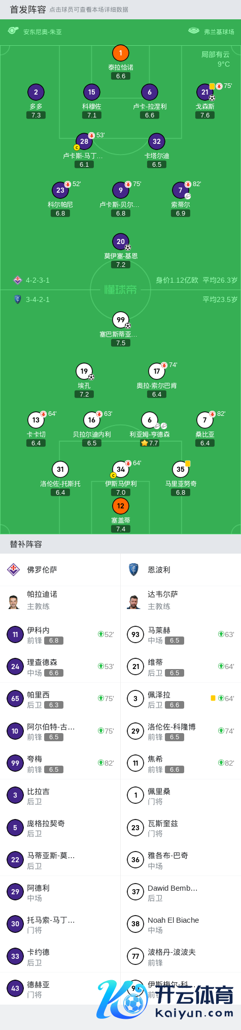第70分钟,佛罗伦萨球员索蒂尔助攻戈森斯打入一球。
