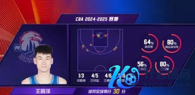 在与深圳的那场对决中,王睿泽上场44.3分钟,14中9,3分5中4,拿下30分,3助攻,2个篮板,他亦然本场比赛单场得分卓绝30的原土选手。而在 NBA原土球员的数据统计中,王睿泽以最高的186分位列第2,他的三分球射中率为43%,平均每场20.7分,距离胡金秋只差一步。