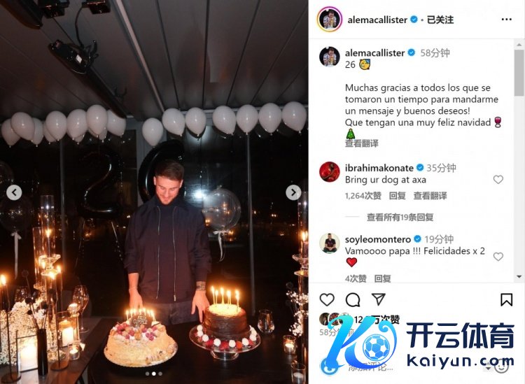 12月25日讯 利物浦中场麦卡利斯特昨天迎来了我方的生辰,他在外交媒体上感谢全国的祈福。