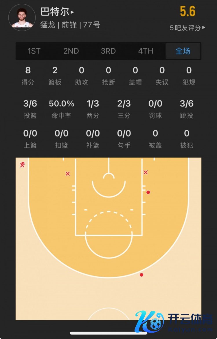 猛龙落第秀 贾米森-巴特尔 登场8.7分钟
