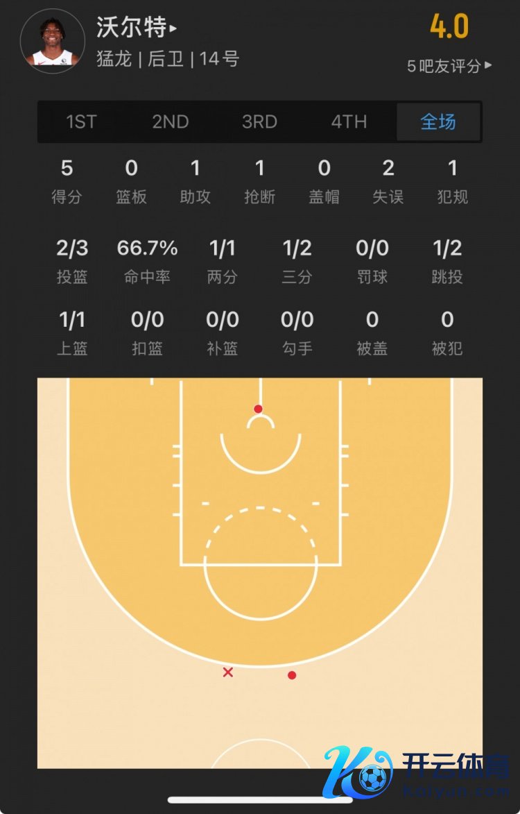 猛龙19号秀 贾科比-沃尔特 登场16.2分钟