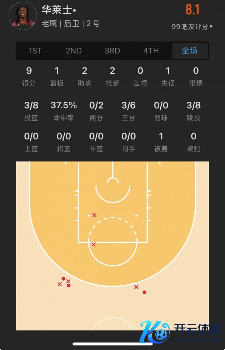 老鹰落第秀 基顿-华莱士 登场15.6分钟