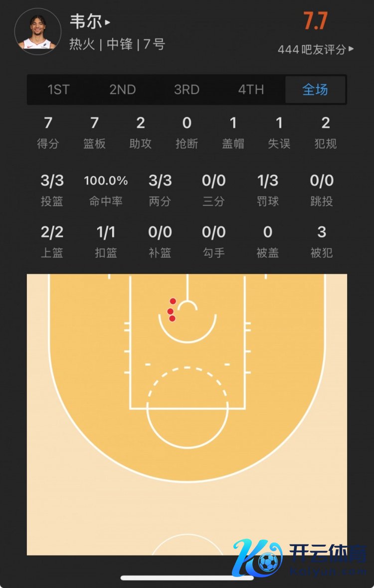 热火15号秀 克雷尔-韦尔 登场13.7分钟