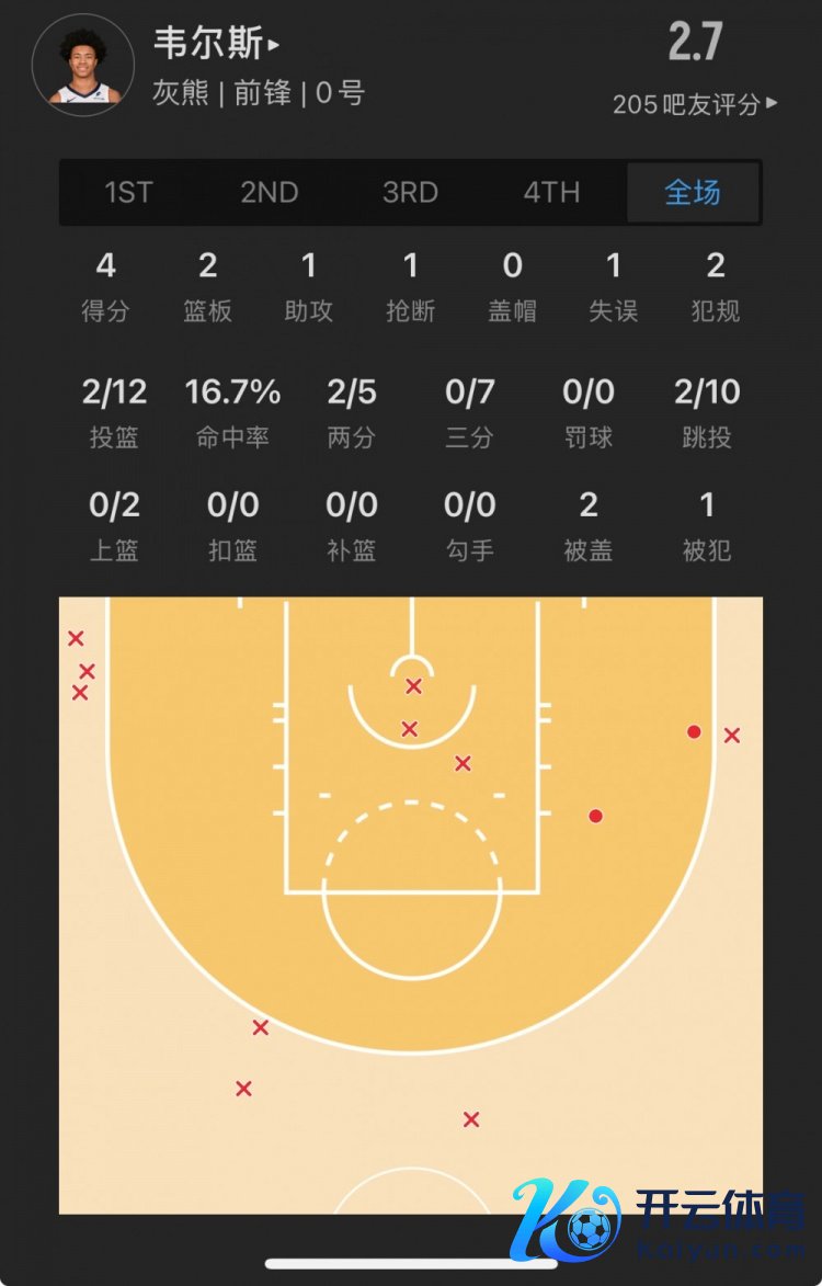 灰熊39号秀 杰伦-韦尔斯 登场25.2分钟