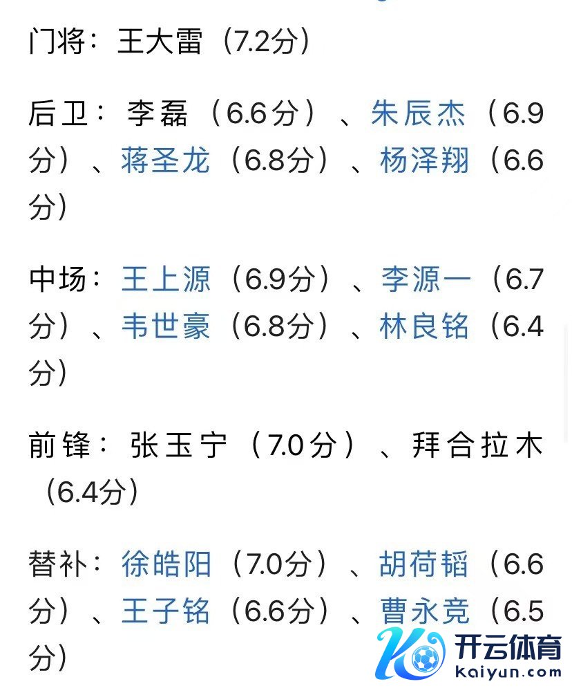 国足唐突赢球,张玉宁确乎功不可没体育赛事直播,本场比赛除了91分钟绝杀敌手,何况还在上半场获取一个单刀球,何况本场比赛张于宁在前场的支点作用荒谬证据,基本上国足的每一次蹙迫,都离不开张玉宁。但是咱们不可忽略了另一位有功之臣,他即是国足14号球员王大雷,本场比赛王大雷高接低档,屡次孝敬精彩扑救力保球门不失球,如若不是王大雷在球门前的精彩弘扬,国足可能早就失球了,何况王大雷除了守门有精彩弘扬,在贪图蹙迫方面也很出色。赛后,著名足坛数据网站sofascore给国足全队评分,王大雷力压张玉宁获取第1。