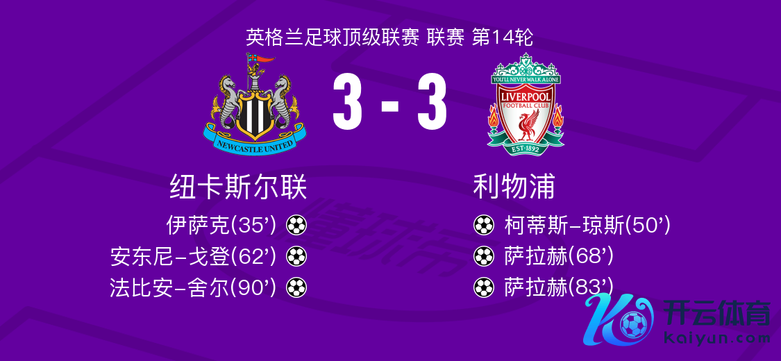 北京工夫12月5日纽卡斯尔联vs利物浦,获得全场最高的9.1分,努涅斯获得全场最低的5.9分